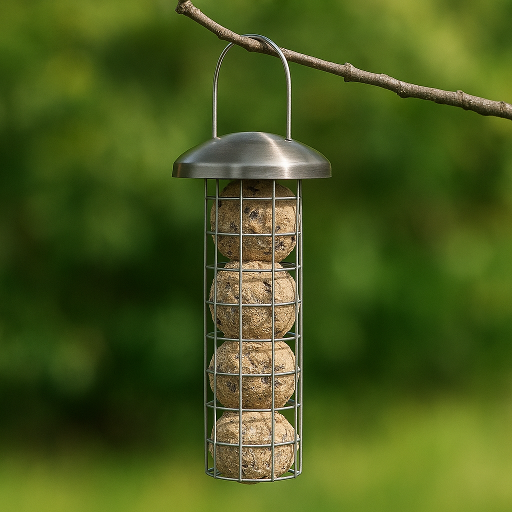 Få besøg af glade fugle i din have med vores stilfulde foderautomat i stål til mejsebolde! Hold haven hyggelig og fuglene mætte med dette elegante tilbehør.
